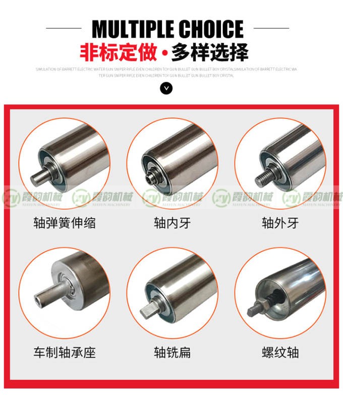 3、輥筒材質(zhì)選擇:碳鋼鍍鋅、碳鋼鍍鉻、碳鋼包膠、鋁合金、不銹鋼、ABS等。